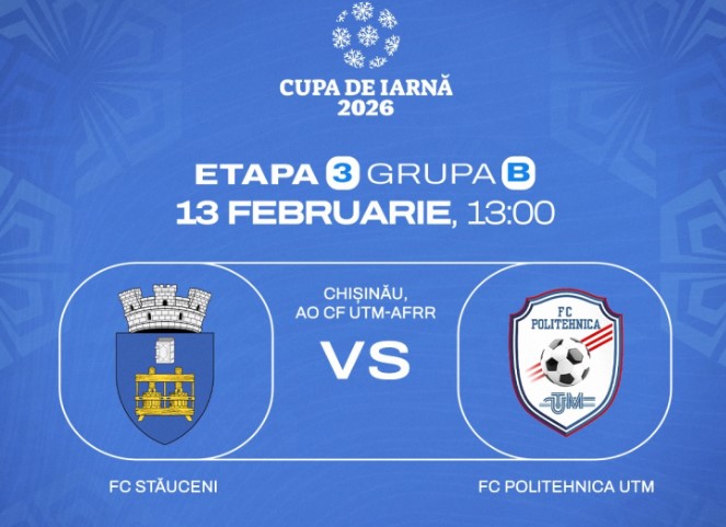 Сегодня в группе В «Зимнего кубка FMF» состоится один матч. На стадионе «UTM Академии Раду Ребежи» встретятся ФК «Стэучень» и столичная «Политехника UTM».